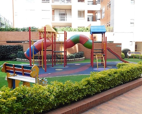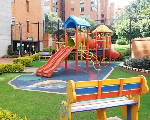 Sin salir del conjunto residencial, los niños pueden jugar seguros en el parque infantil.